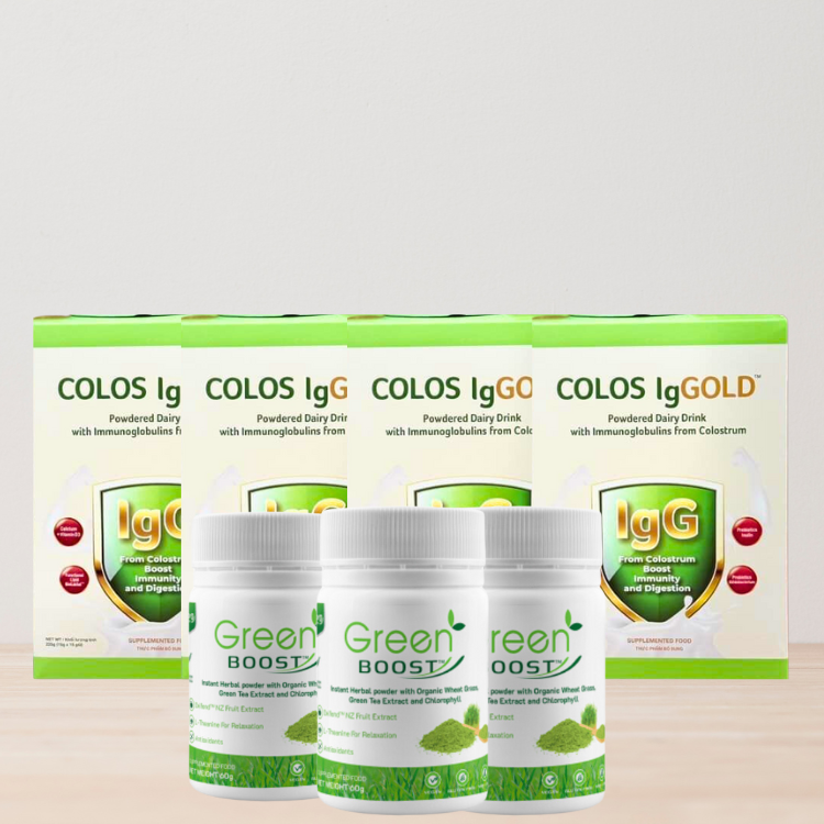 – Cả 2 sản phẩm trong combo là sữa non Colos IgGold dạng gói và Trà diệp lục GreenBoost đều được sản xuất tại New Zealand và nhập khẩu bởi CAREFORE GLOBAL VIỆT NAM