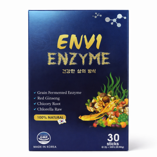 Envi Enzyme Hàn Quốc là sản phẩm bổ sung enzyme tiêu hóa dạng bột uống trực tiếp, được sản xuất theo tiêu chuẩn GMP tại Hàn Quốc. Công thức kết hợp enzyme lên men từ ngũ cốc cùng các thành phần tự nhiên như chiết xuất rễ rau diếp xoăn, bột tảo chlorella, bột hồng sâm và protein thực vật giúp hỗ trợ hệ tiêu hóa hoạt động hiệu quả, cải thiện tình trạng đầy bụng, khó tiêu và hỗ trợ tăng hấp thu dinh dưỡng.