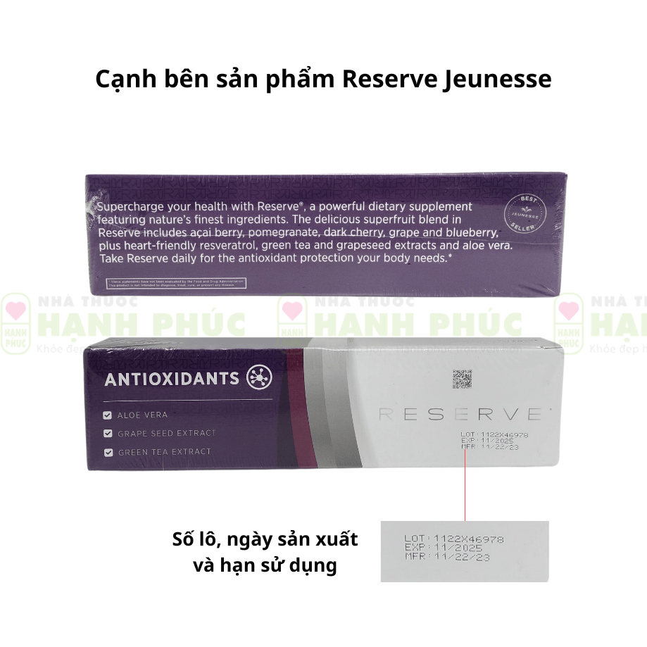 Gel trái cây Reserve Jeunesse được sản xuất bởi tập đoàn Jeunesse Global, có thành phần chiết xuất từ nhiều loại siêu trái cây giàu chất chống oxy hóa như trái anh đào, trái acai berry, việt quất, lựu đỏ, nho đen, lô hội, trà xanh,… cùng với công nghệ sinh học tiên tiến, mang đến nhiều lợi ích cho sức khỏe và sắc đẹp. Các thành phần này kết hợp lại cung cấp các dưỡng chất cần thiết, giúp làm sáng, săn chắc và tái tạo làn da một cách hiệu quả.