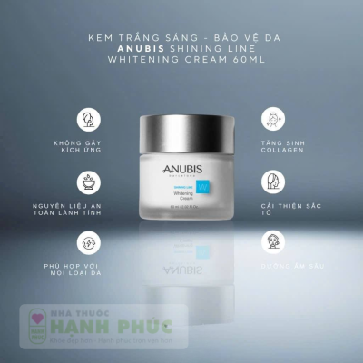 Nhà Thuốc Hạnh Phúc cam kết phân phối sản phẩm Anubis Shining Line Whitening Cream chính hãng 100%. Hãy đầu tư cho làn da của mình ngay hôm nay để cảm nhận sự thay đổi rạng rỡ và bền vững!