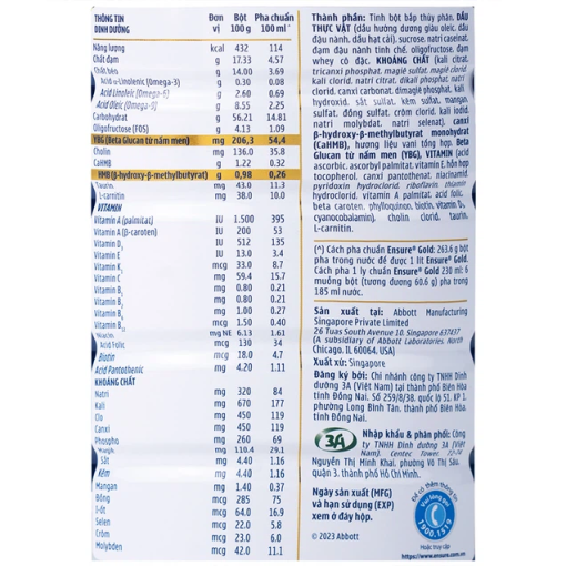 Khi pha đúng, 1 ml Ensure Gold cung cấp ~1,14 kcal.