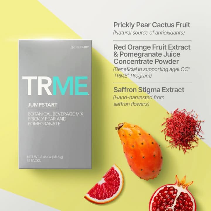 Sản phẩm ageLOC TRME Jumpstart của Nuskin với thành phần từ tự nhiên như nước ép lựu, nhụy hoa nghệ tây,… sẽ mang đến giải pháp khởi đầu lý tưởng cho hành trình quản lý cân nặng của bạn bằng cách hỗ trợ điều chỉnh cảm giác thèm ăn và cải thiện hiệu quả giảm cân, mang lại vóc dáng cân đối.