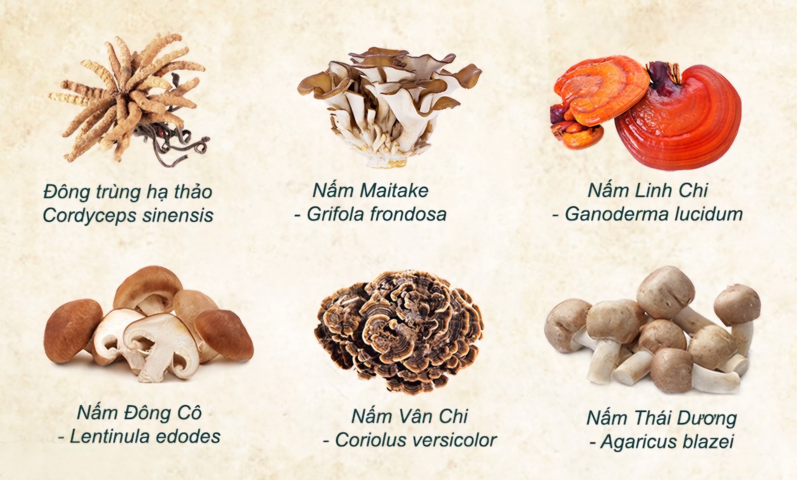 – Nấm Vân Chi: Tăng cường sức đề kháng, hỗ trợ tiêu hóa và cải thiện chức năng gan.