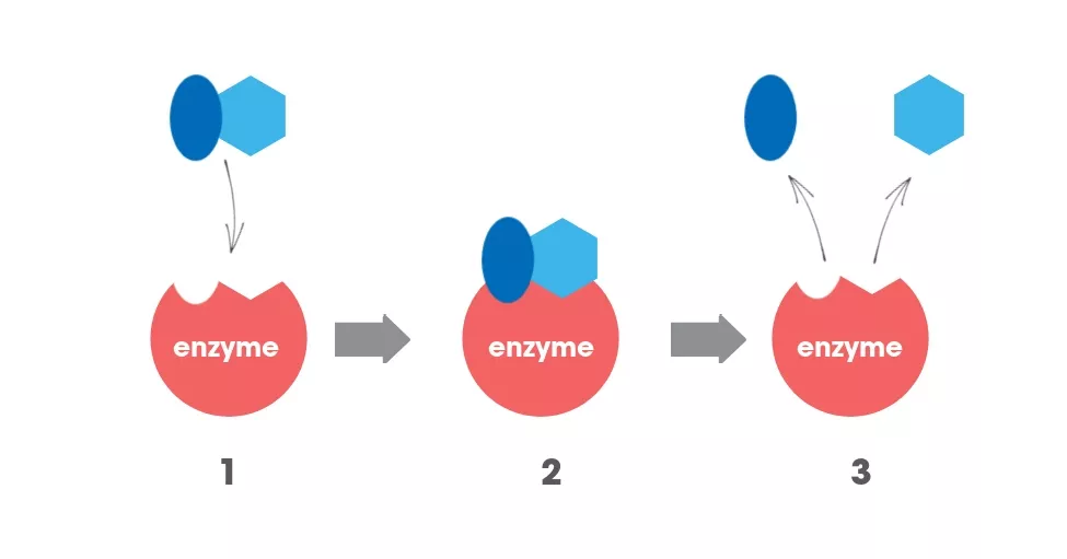 Có thể tóm tắt cơ chế hoạt động của enzyme qua ba bước chính: